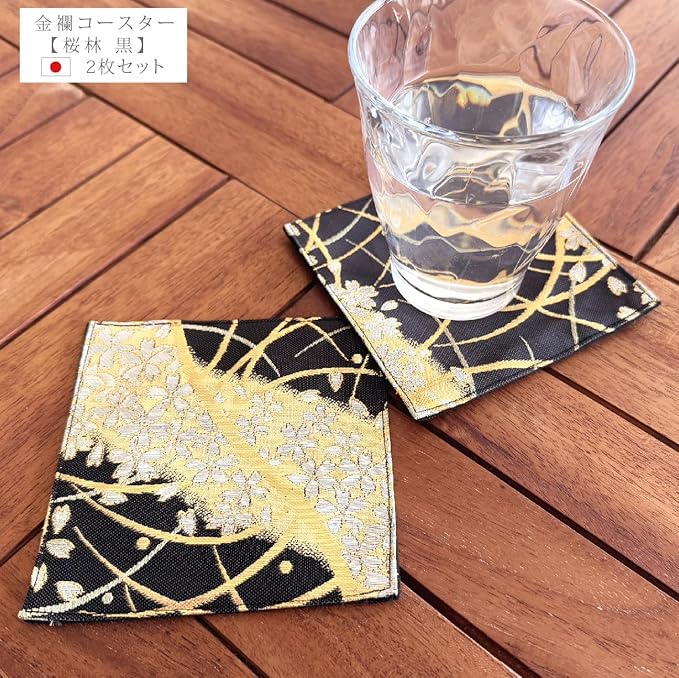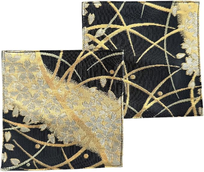 These Japanese-style coasters are made with luxurious, high-quality Nishijin brocade, carefully selected by Matthew. They make the perfect souvenir from Japan. [Size] Approximately 11cm x 11cm, Set of 2 [Material] 100% polyester (brocade) / Back: 100% cotton. Pattern placement may vary slightly from piece to piece. Four-sided stitching ensures durability and long-lasting wear! Made in Japan. Manufactured in Sukumo City, Kochi Prefecture.