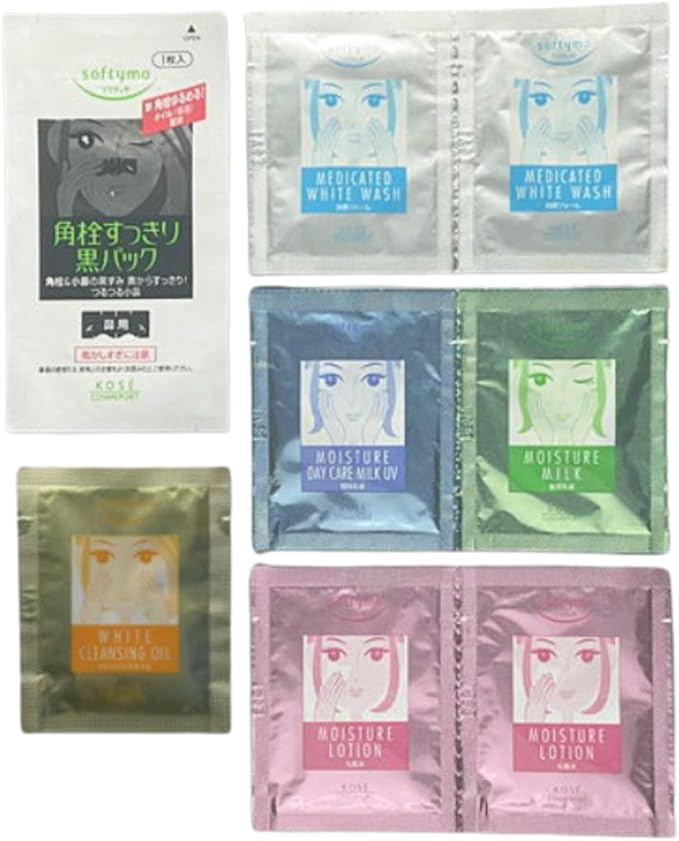 [Contents per packet] ・Cleansing oil / 1 packet ・Facial cleanser / 2 packets ・Lotion / 2 packets ・Night lotion / 1 packet ・Morning lotion SPF15PA+ / 1 packet ・Medicated black mask / 1 packet