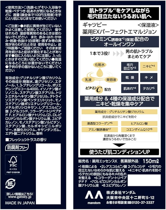 Acne care and smooth skin: This medicated all-in-one lotion delivers three benefits in one bottle. For a more beautiful, more appealing complexion. Net weight: 150ml. Country of origin: Japan.