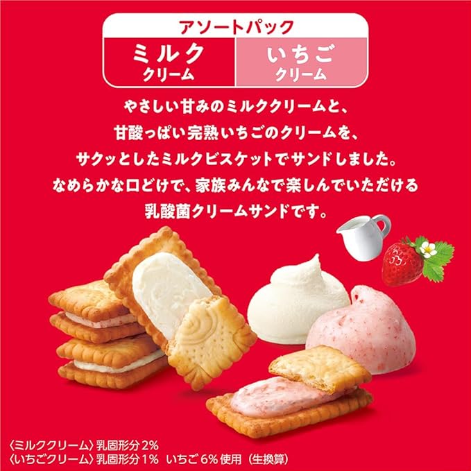 Ingredients: Wheat flour (Made in Japan), sugar, shortening, lactose, vegetable oil, whole milk powder, inulin, fermented liquid, salt, starch, wheat protein, lactic acid bacteria/calcium carbonate, leavening agent, flavoring, emulsifier, vitamin B1, vitamin B2, vitamin D (contains some dairy and wheat ingredients). Wheat flour (Made in Japan), sugar, shortening, lactose, vegetable oil, inulin, whole milk powder, strawberry powder, fermented liquid, salt, wheat protein, starch, lactic acid bacteria/calcium carbonate, leavening agent, flavoring, emulsifier, acidulant, vitamin B1, vitamin B2, vitamin D (contains some dairy and wheat ingredients). Product Dimensions (H x D x W): 19cm x 3cm x 27.5cm.