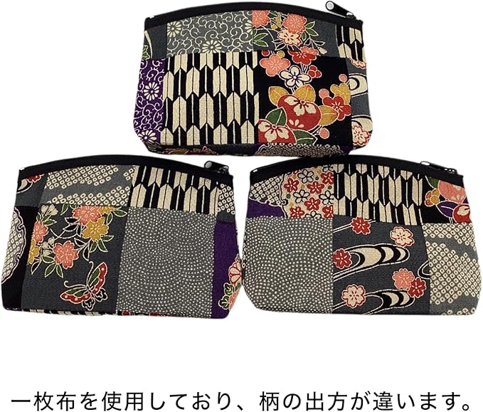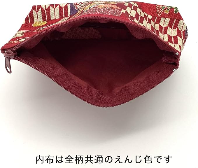 Made in Japan. Material: Polyester crepe. Size: Approx. 15.5cm x 12cm x 4cm. This lightweight, gusseted crepe pouch is made from polyester and made in Japan. It can be used for a variety of purposes, including makeup, accessories, and chargers. It’s also recommended for sorting items when traveling. It’s a classic, easy-to-use gusseted pouch. Enjoy the cute Japanese pattern. *Since it’s made from a single piece of fabric, the pattern may vary. The photo is an example.