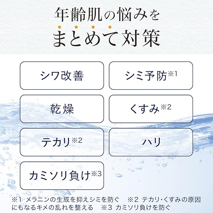 This one-product formula addresses age-related skin concerns. Contains the active ingredient niacinamide. This all-in-one anti-aging care product addresses eye concerns as well. Net weight: 90g. Country of origin: Japan.