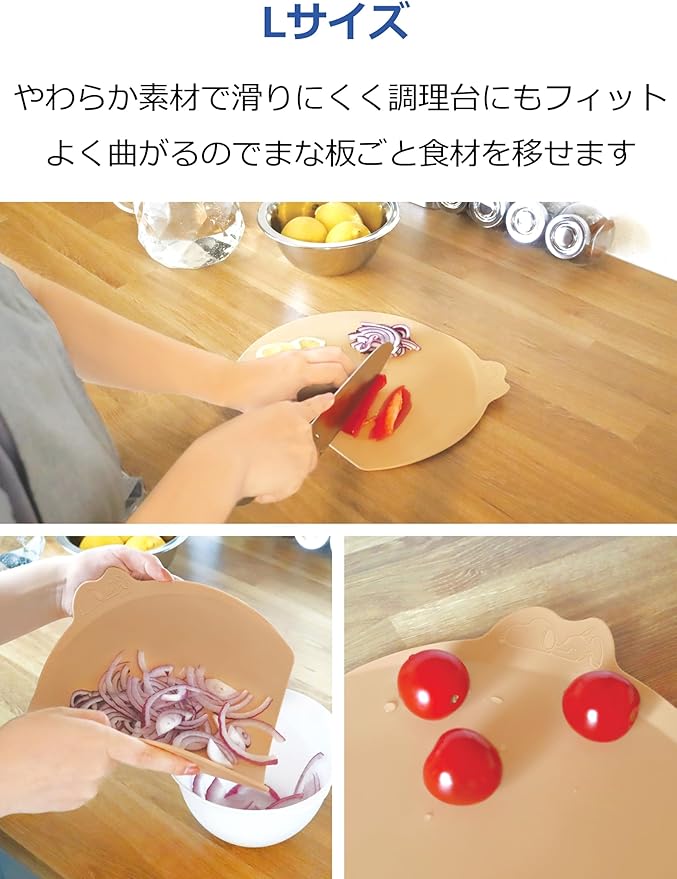 Product dimensions: S size: 21 x 18.2 x 1.5 cm, L size: 27 x 21.2 x 1.5 cm. Weight: S size: approx. 70 g, L size: approx. 115 g. Material: S size: Polypropylene, L size: Heat-resistant elastomer. Heat resistance temperature: approx. 120°C. Country of origin: Japan.