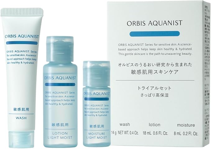 This trial set includes approximately one week’s worth of the moisturizing skincare “ORBIS U Aquanist Series (refreshing, highly moisturizing type)” for sensitive skin, including face wash, lotion, and emulsion.