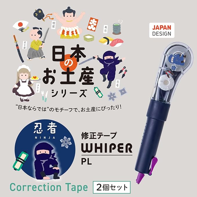This convenient and functional stationery series features motifs unique to Japan. This stationery series makes the perfect souvenir to take home with you as a memento of your time in Japan. The Whiper PL correction tape is slim and smooth, just like using a regular pen. Dimensions: W 115 x D 16 x H 24 mm; Tape Width: 5 mm; Tape Length: 6 m.