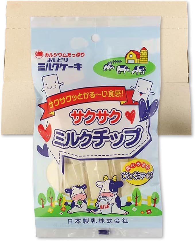 Nippon Shinyaku Crispy Milk Chips, 38g, PSJBOX, Individually Wrapped, Milk Confectionery. A sister product of the Oshidori Milk Cake, these bite-sized chips are made using a unique manufacturing process for a light, crispy texture. Packed with calcium, these milk snacks are addictive for their gentle milk flavor and crispy texture.