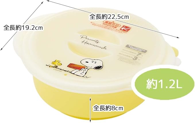Size: 22.5cm W x 19.2cm D x 8cm H. Material: Polypropylene. Country of Origin: Japan. Capacity: 1.2L. Heat Resistance: 140°C/-20°C.