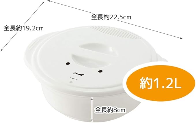 Size: 22.5cm W x 19.2cm D x 8cm H. Material: Polypropylene. Country of Origin: Japan. Capacity: 1.2L. Heat Resistance: 140°C/-20°C.