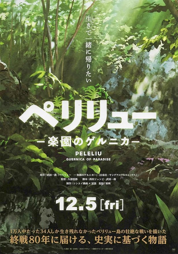 ■Specifications: Japanese anime movie flyer. Directed by Konosuke Uda, director of the gross-out episode of the anime “Yo-Kai Watch.” ■Voice Cast: Rikito Itagaki, Tomoya Nakamura ■Size: B5 ■Work: Peleliu: Guernica in Paradise (2025)